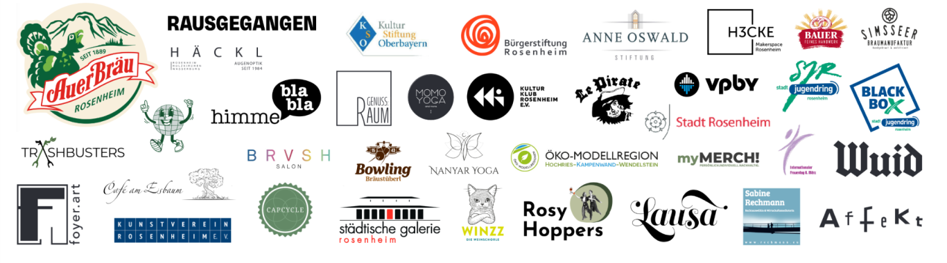 h3cke - Makerspace | stadtjugendring | Blackbox | Städtische Galerie Rosenheim | Momo yoga studio | trashbusters | Daenz Brause | Kulturklub | Capcycle | awa * spere | rausgegangen | himmeblabla podcast |